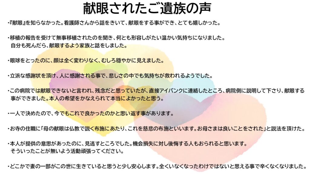 今回の機会を通じて、献眼へのご理解をさらに深めていただけたことを大変ありがたく思っております。