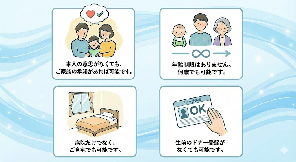 ご登録をお考えのこの時に、家族の一人ひとりが提供についてどのように考えているか、ご家族で話し合われてみてはいかがでしょうか。